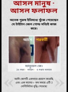 “প্রথম ৭ দিনেই পরিবর্তন! সহবাসের সময় ৫০ মিনিটের কাছাকাছি। লিঙ্গ ৩ ইঞ্চির মতো লম্বা হয়েছে। Russian Gel খুব দ্রুত কাজ করে।” – মাহফুজুর রহমান, খুলনা