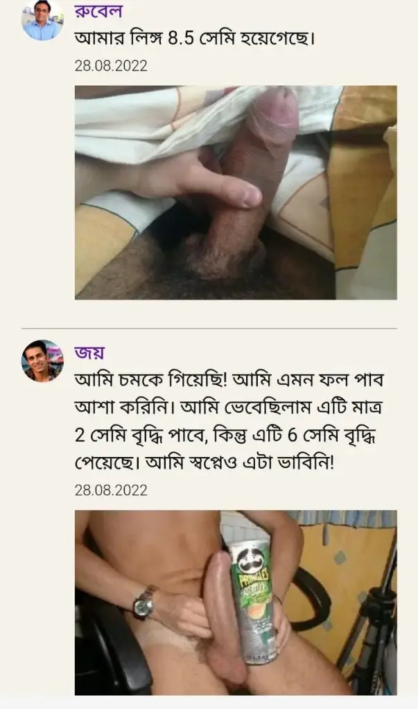 “প্রতিদিন রাতে ব্যবহারের ফলে এখন আমার পারফরম্যান্স স্ত্রীর মুখে হাসি ফোটায়। আকারে ২ ইঞ্চি মতো বড় হয়েছে।” – কামীর হাসান, নারায়ণগঞ্জ